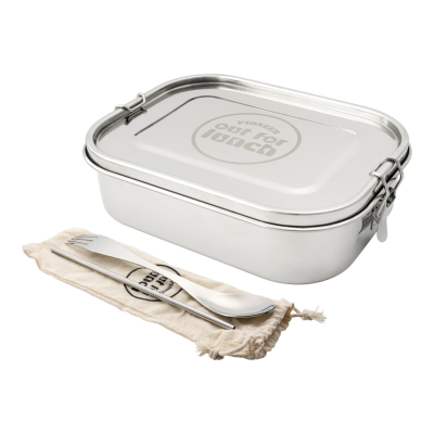 Out For Lunch S/S Lunch Box 800ml with Divider, Spork, Straw & Bag Mirror