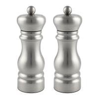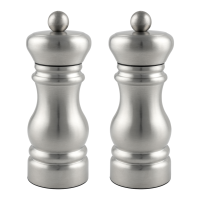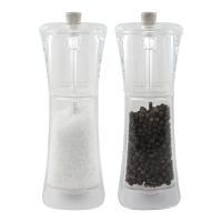Twist action double mill that dispenses both salt and pepper.