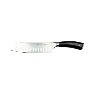 The Santoku Knife is a Japanese variant of the chef's knife. The Santoku, which translates to ""three ways,"" is a flexible knife that can be used for slicing, dicing, and mincing, among other things. This 18cm Santoku Knife, which easily slices through vegetables, fruit, and meat, was originally crafted and invented for Japanese homemakers who wanted to recreate Western-style cuisine in their kitchen (not to be confused with the other Western-style Japanese knife - Gyoto).