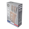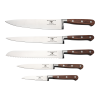 The beautiful Pakka Wood 6 Piece FRF 8008 Knife Block comes with a 10cm Paring Knife, 13cm Utility Knife, 20cm Bread Knife, 20cm Carving Knife and 20cm Chef's Knife. The knives are made from premium German steel with a Superior Rockwell hardness rating of HRC55+2, and smooth, comfortable Pakka Wood handles.