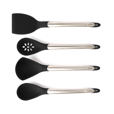 CUISIPRO Silicone Tool Set-Ladle Turner Spoon & Slotted Spoon Black